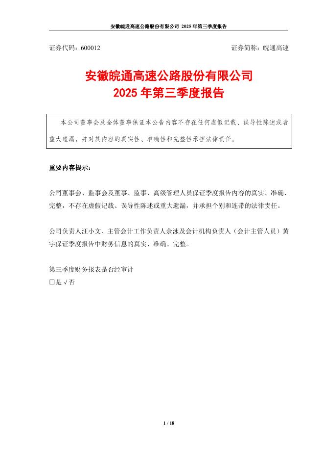 600012-皖通高速:皖通高速2025年第三季度报告.pdf