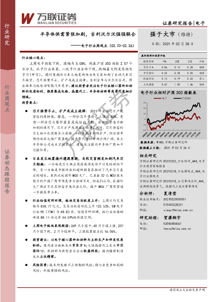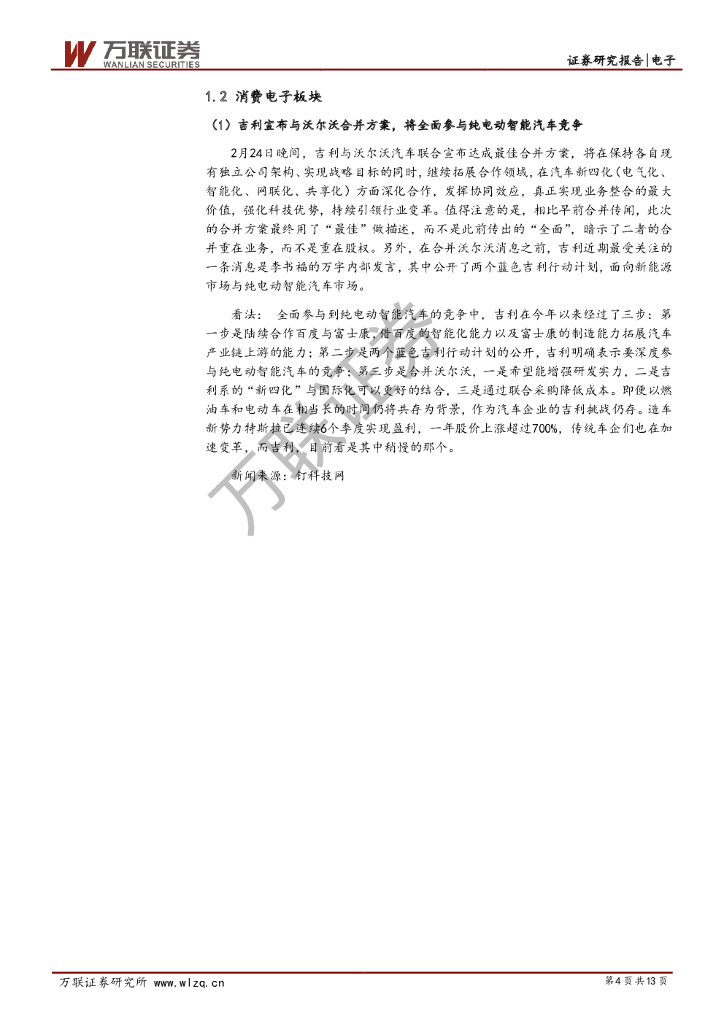 万联证券:电子行业周观点:半导体供需紧张加剧,吉利沃尔沃强强联合.pdf