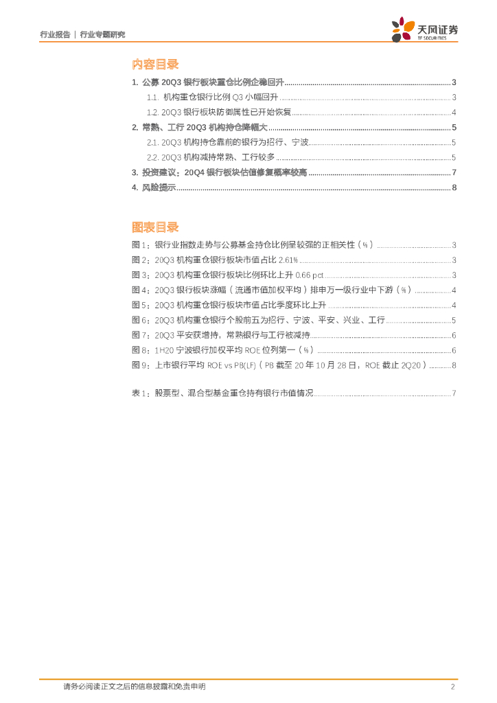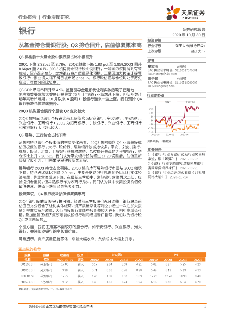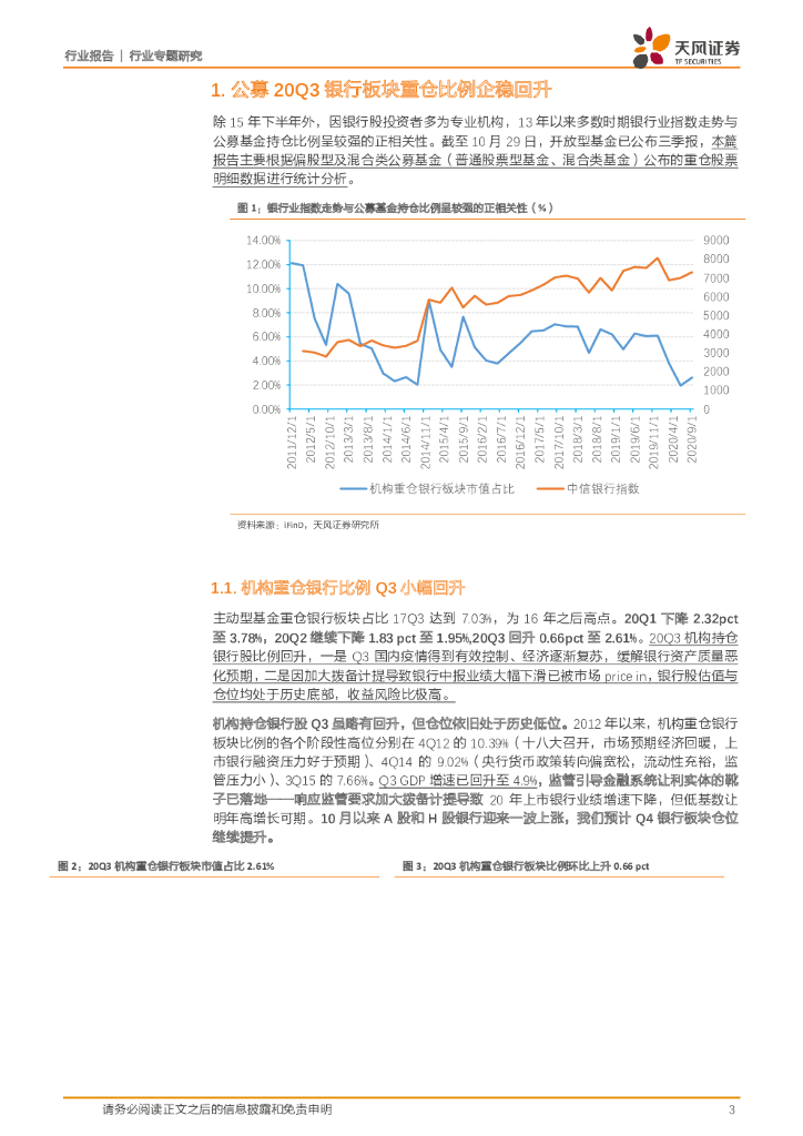 天风证券:银行-从基金持仓看银行股:Q3持仓回升,估值修复概率高.pdf