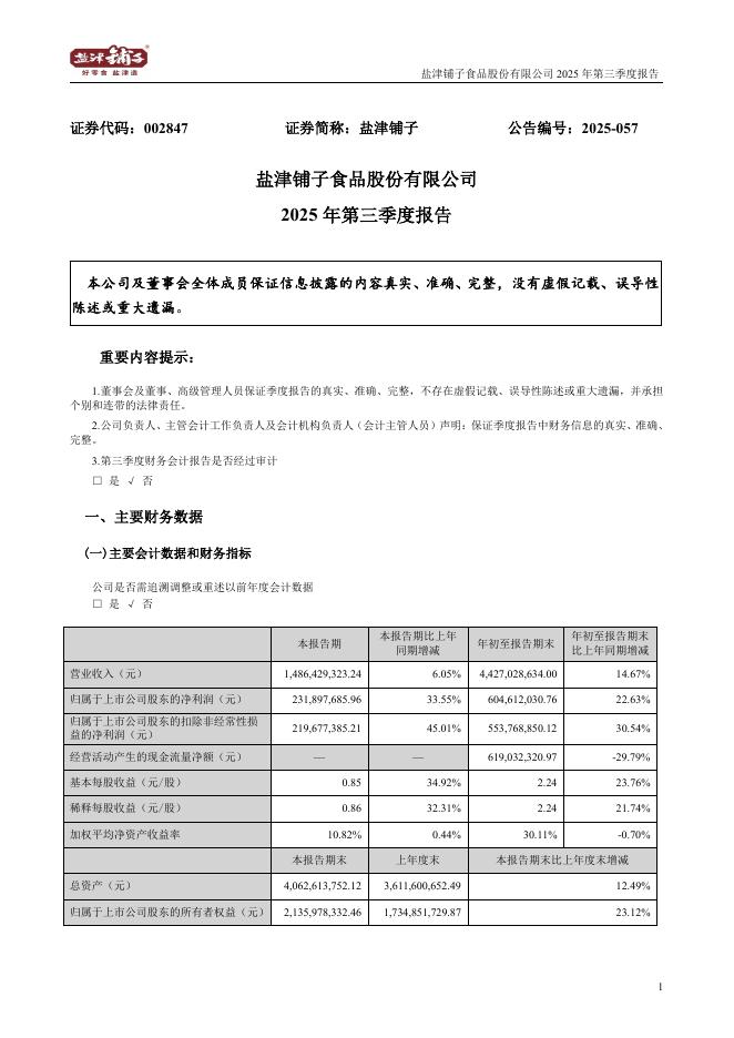 002847-盐津铺子:2025年三季度报告.pdf