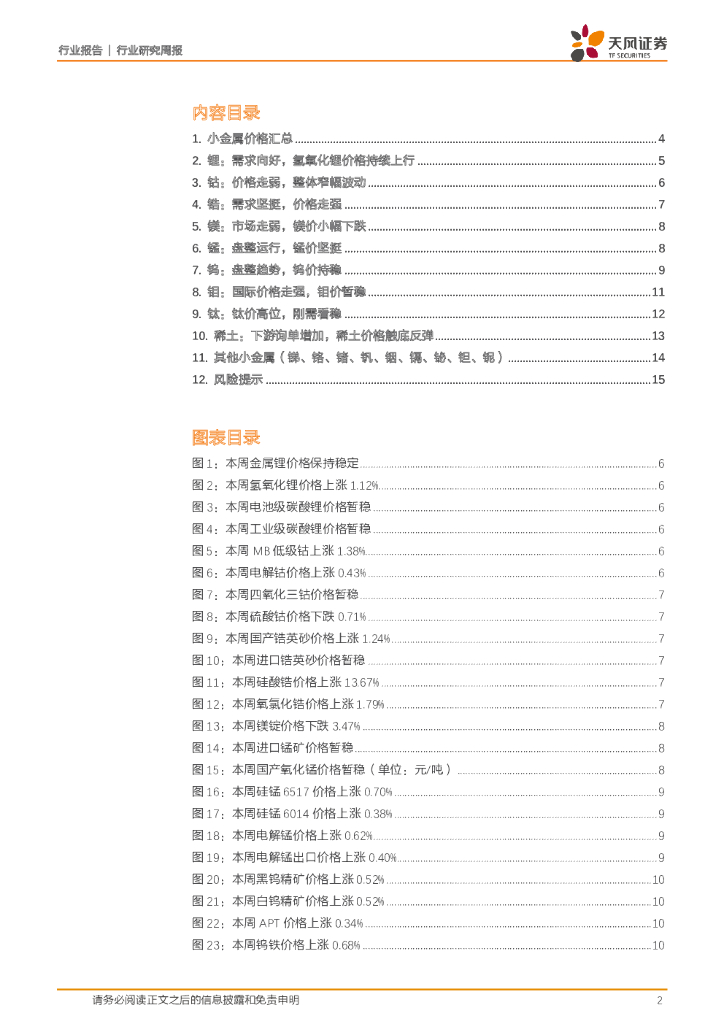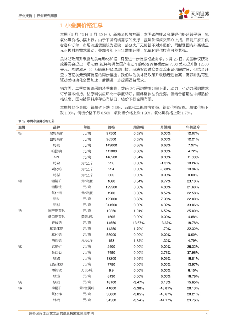 天风证券:稀有金属行业研究周报:美补贴政策升级驱动美电动化加速,持续看好氢氧化锂价格上涨.pdf