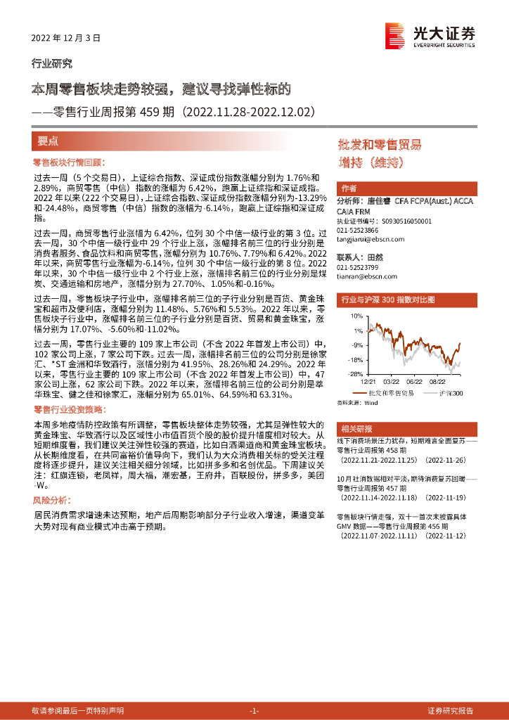 光大证券:零售行业周报第459期:本周零售板块走势较强,建议寻找弹性标的.pdf