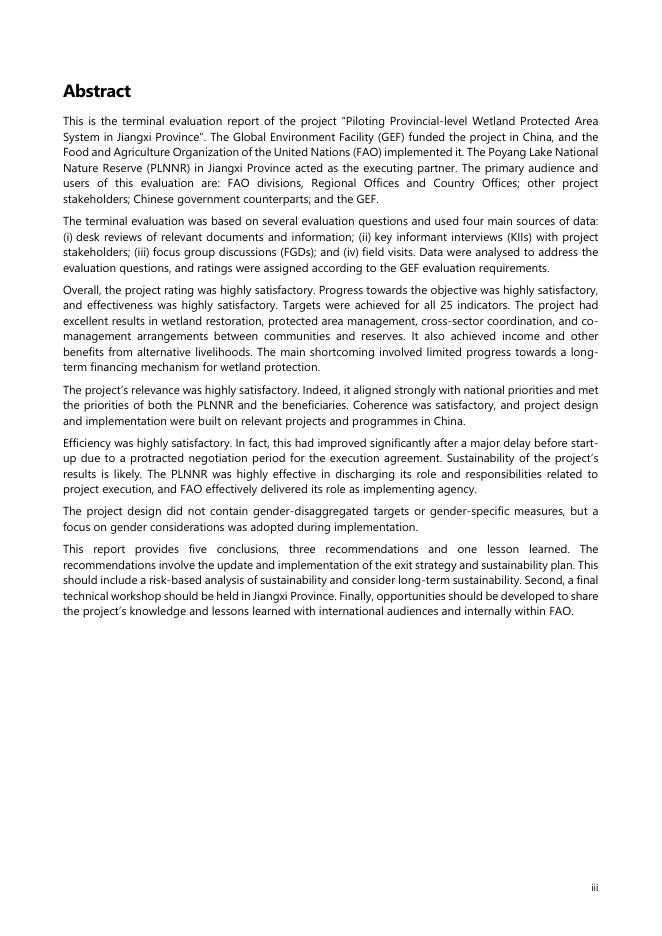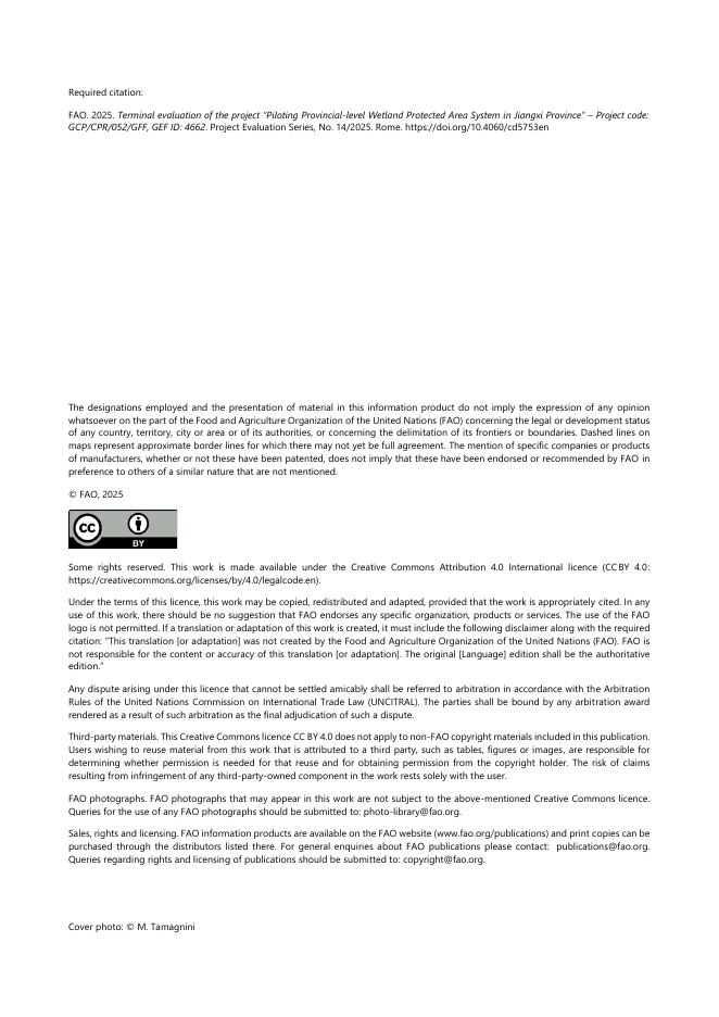 FAO联合国粮农组织:2025年项目“江西省省级湿地保护区系统试点”的终端评估报告(英文版).pdf