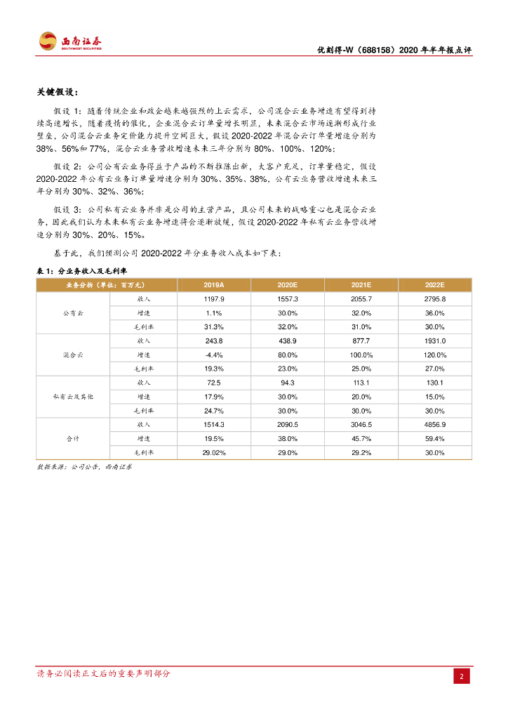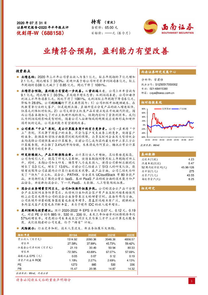 西南证券:优刻得(688158)-2020年半年报点评:业绩符合预期,盈利能力有望改善.pdf
