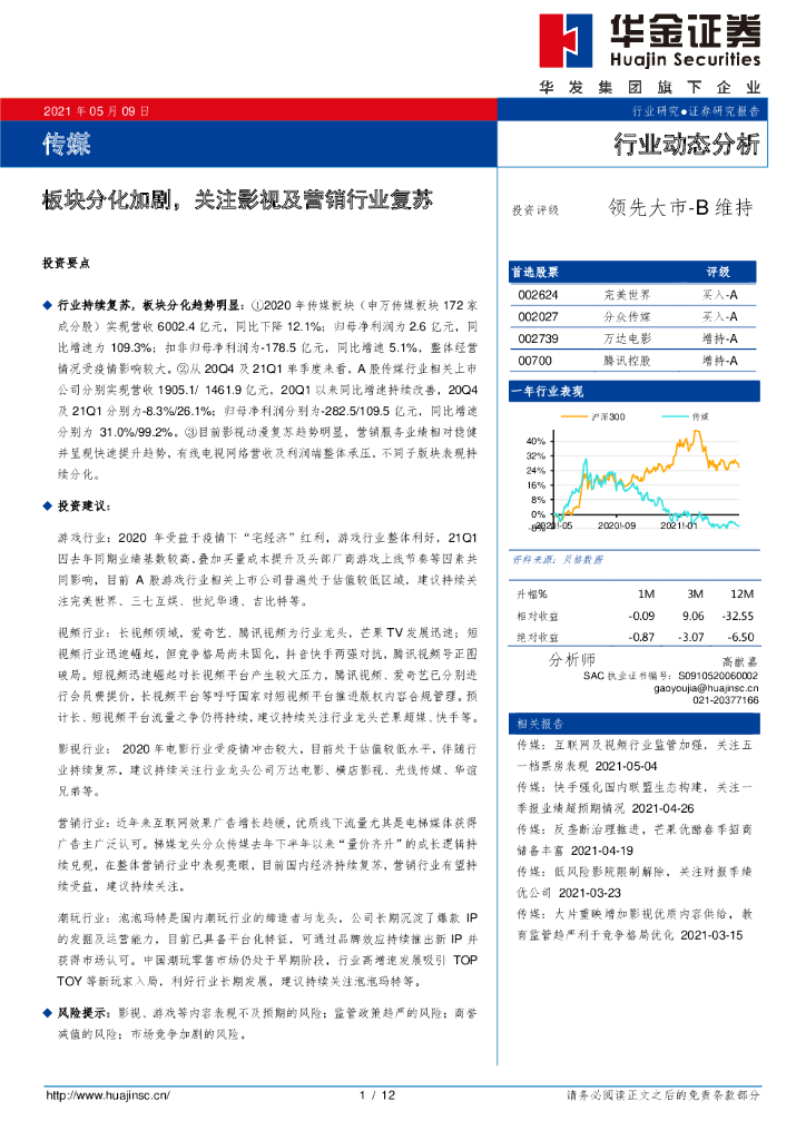 华金证券:传媒行业动态分析:板块分化加剧,关注影视及营销行业复苏.pdf