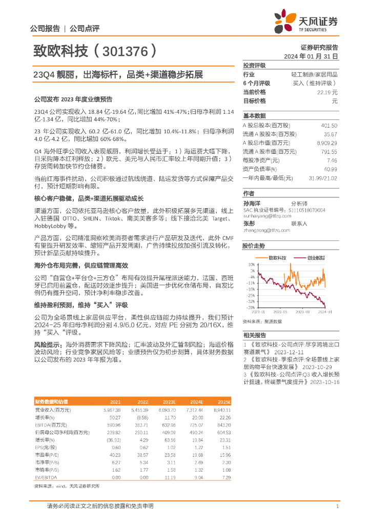 天风证券:致欧科技(301376)-23Q4靓丽,出海标杆,品类+渠道稳步拓展.pdf