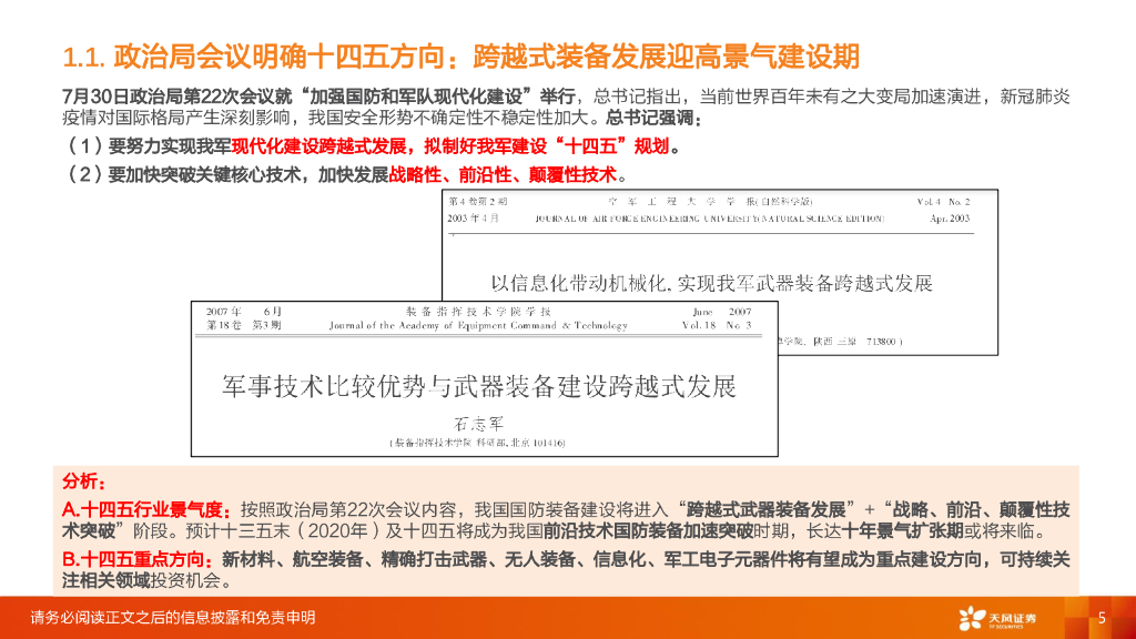 天风证券:国防军工行业投资策略:四十年一遇大换装,聚焦跨越式发展.pdf