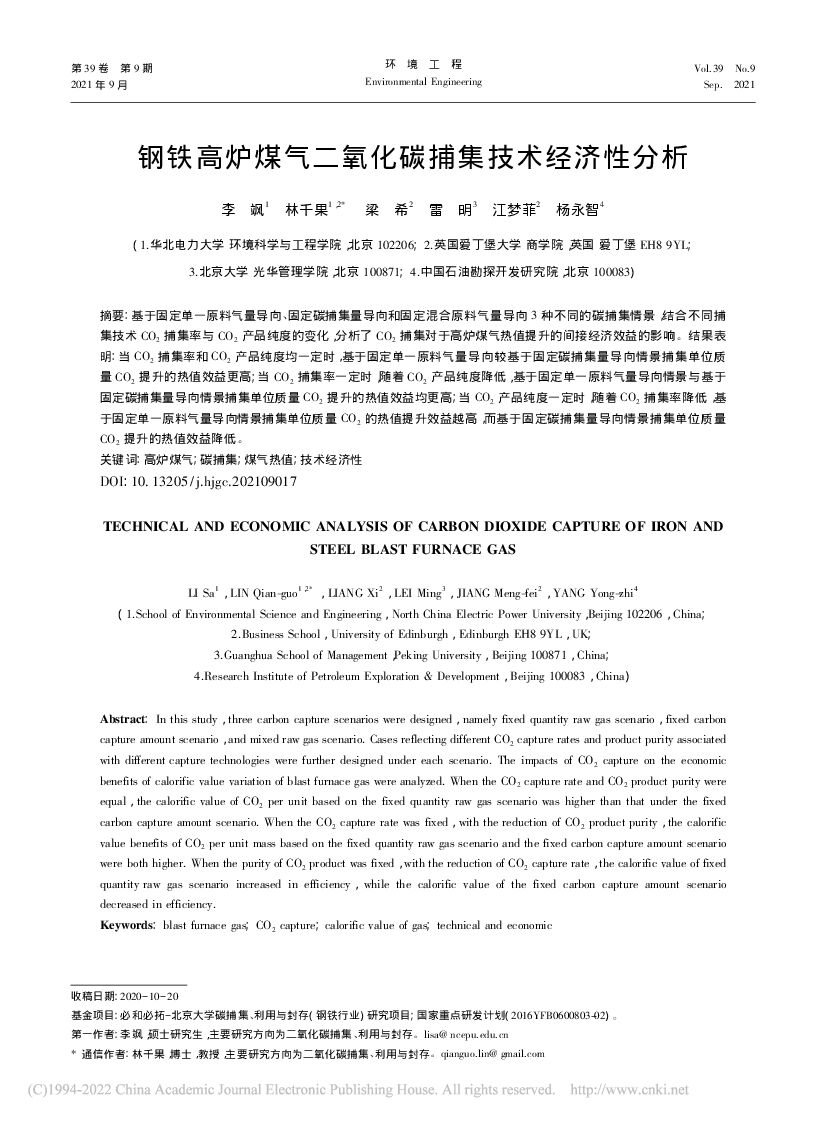 钢铁高炉煤气二氧化碳捕集技术经济性分析.pdf