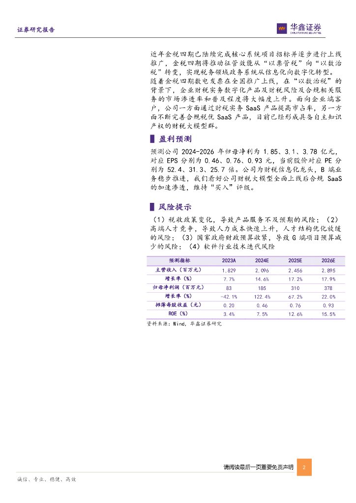 华鑫证券:税友股份(603171)-公司事件点评报告:金税四期带动税务合规需求,B端利润持续增长.pdf
