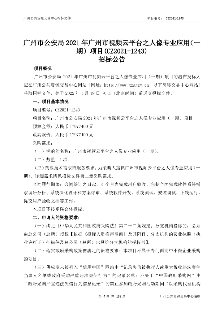 广州市公安局2021年广州市视频云平台之人像专业应用(一期)项目 招标文件正文 第二次招标.pdf