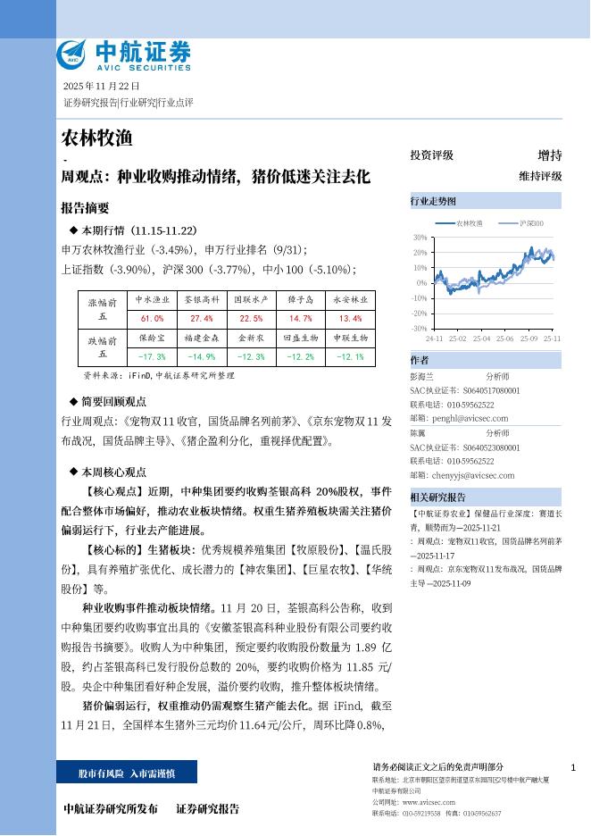 中航证券:农林牧渔周观点:种业收购推动情绪,猪价低迷关注去化.pdf