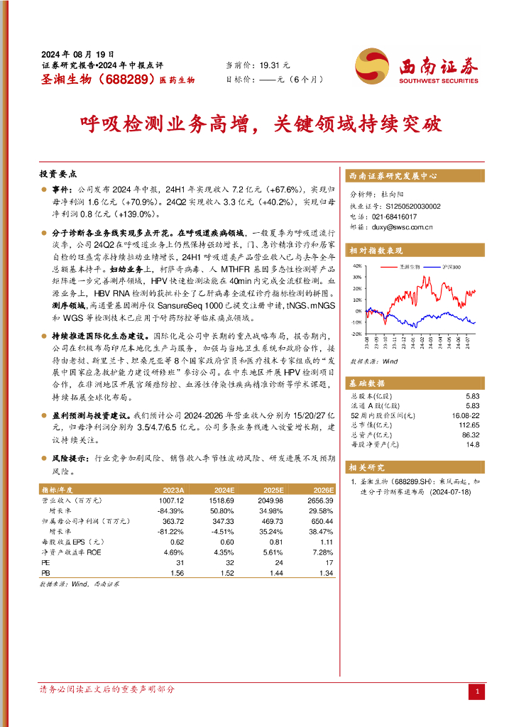 西南证券:圣湘生物(688289)-呼吸检测业务高增,关键领域持续突破.pdf
