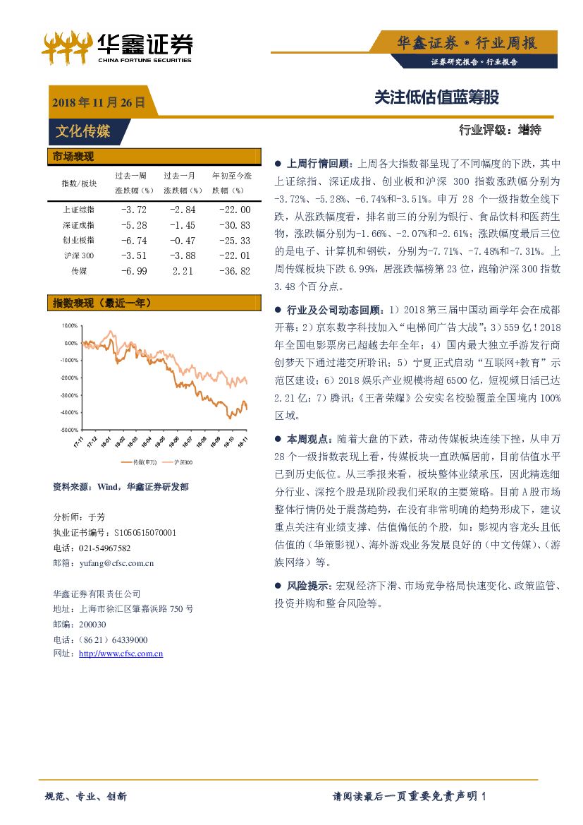 华鑫证券:文化传媒行业周报:关注低估值蓝筹股.pdf