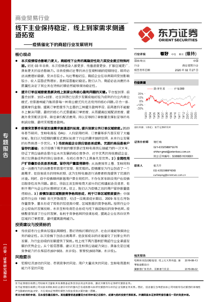 东方证券:疫情催化下的商超行业发展研判:线下主业保持稳定,线上到家需求侧通道拓宽.pdf