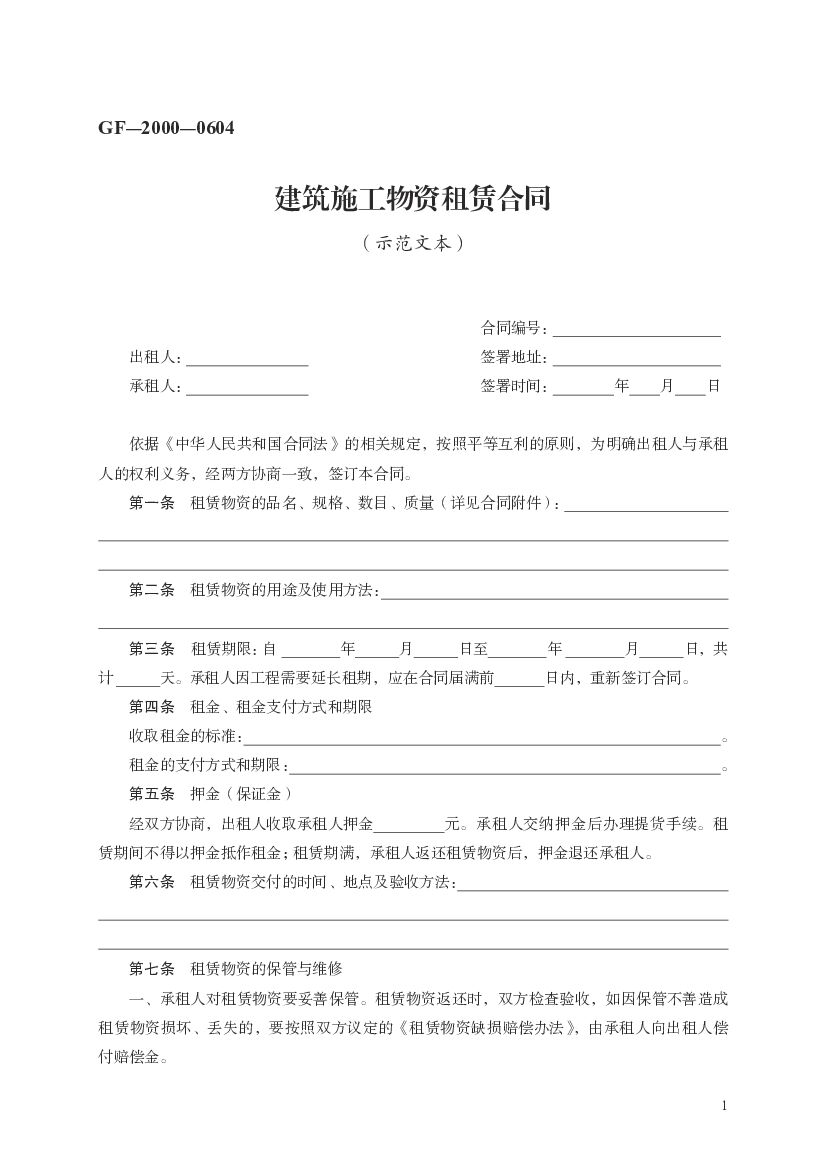 GF-2000-0604 建筑施工物资租赁合同(示范文本).pdf