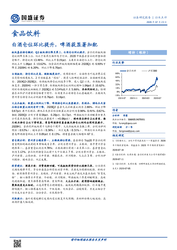 国盛证券:食品饮料:白酒仓位环比提升,啤酒获显著加配.pdf