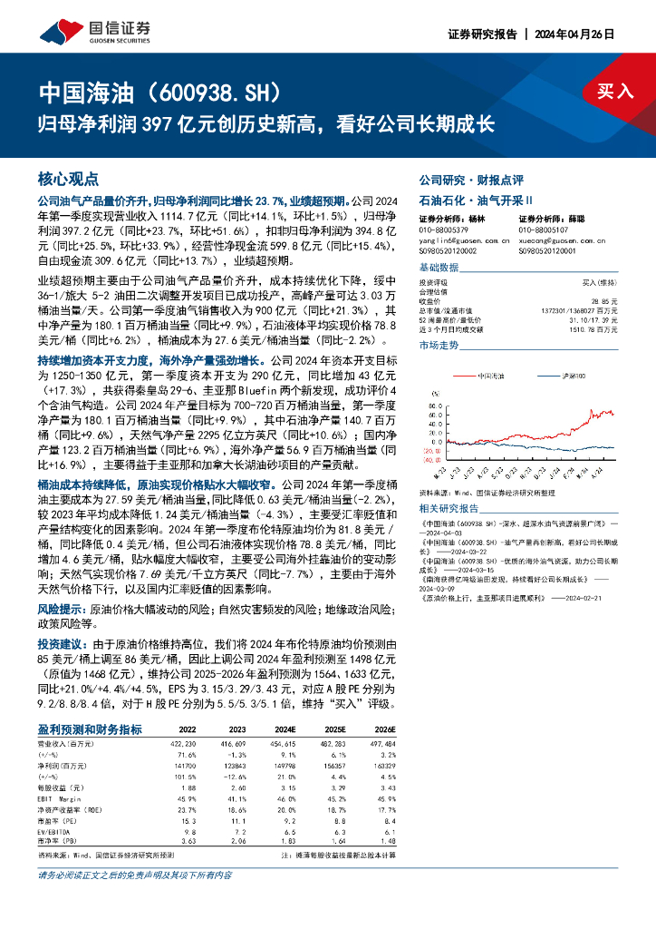 国信证券:中国海油(600938)-归母净利润397亿元创历史新高,看好公司长期成长.pdf