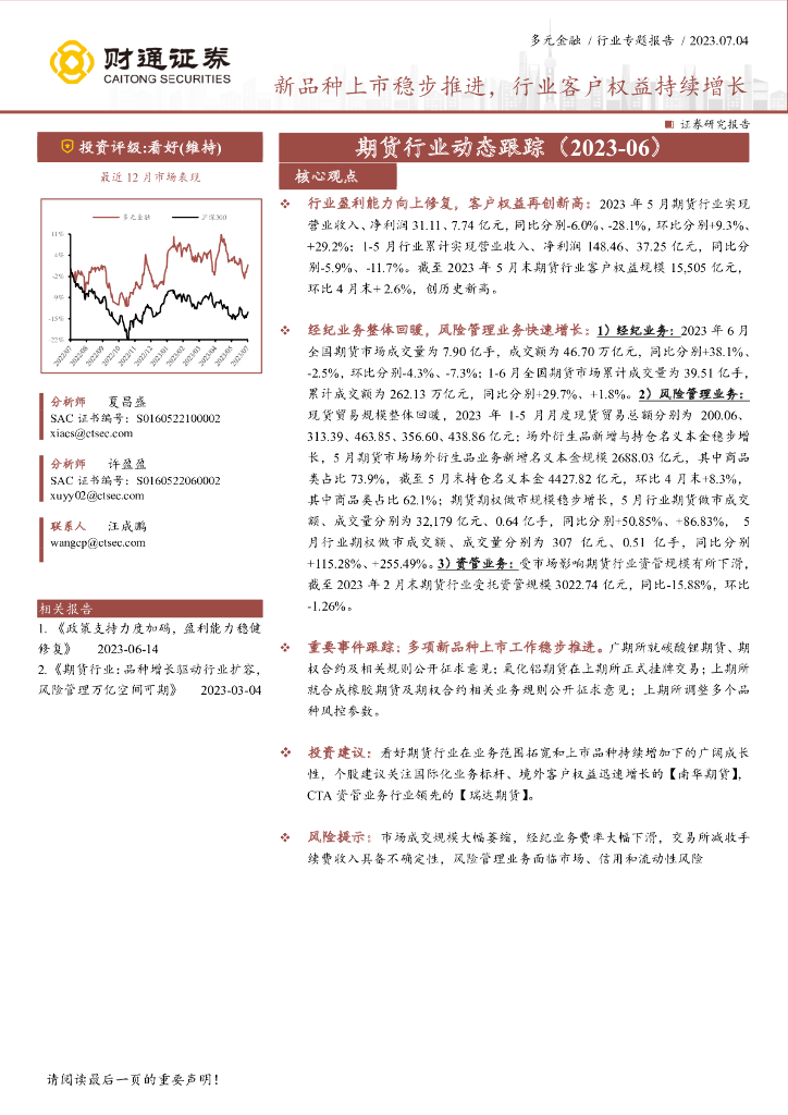财通证券:期货行业动态跟踪(2023-06):新品种上市稳步推进,行业客户权益持续增长.pdf