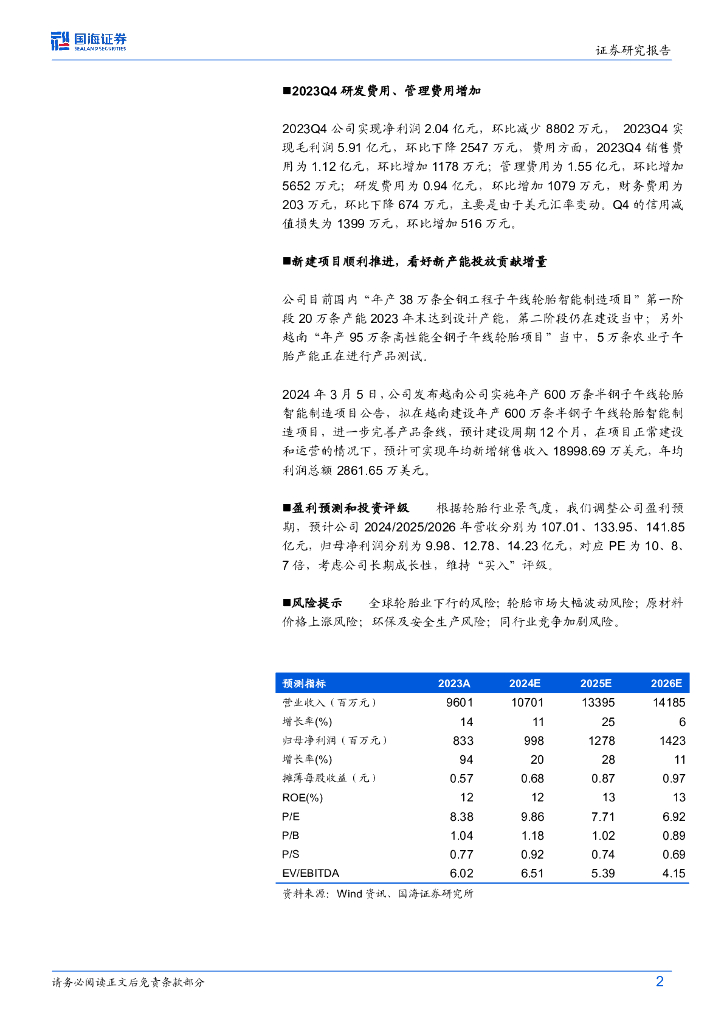 国海证券:贵州轮胎(000589)-2023年年报点评:布局半钢胎产能,公司全球竞争力进一步提升.pdf