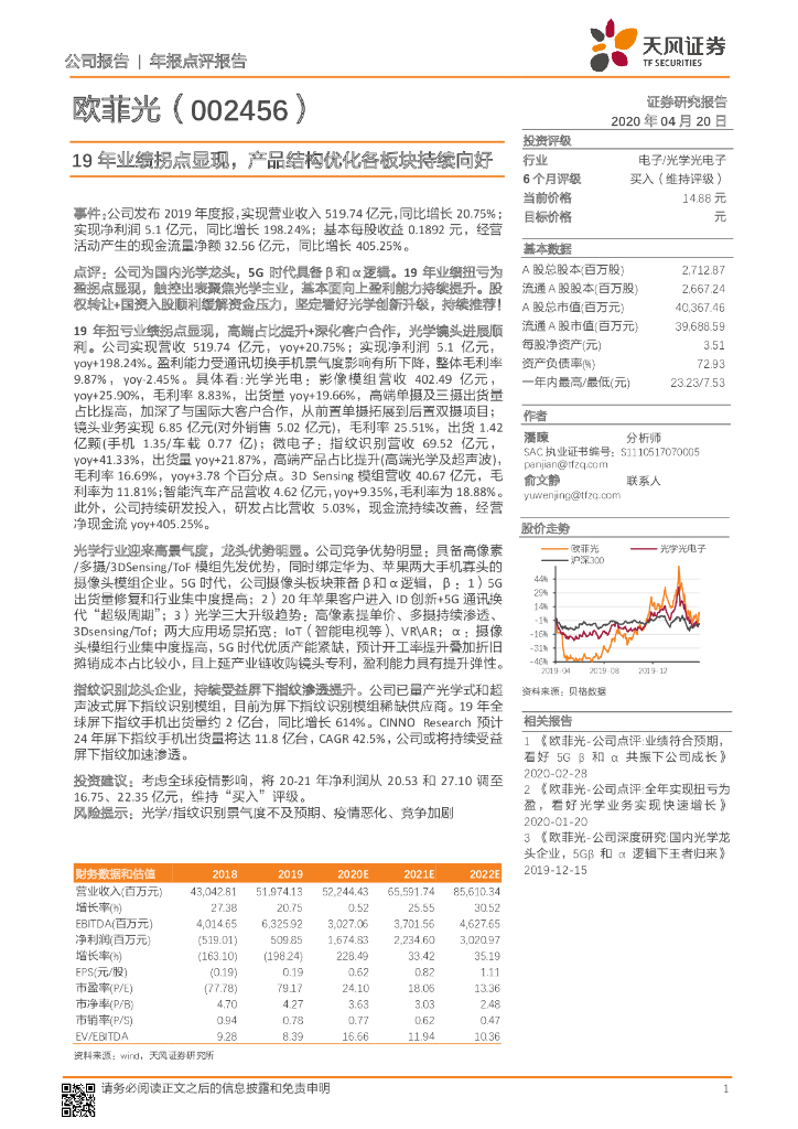 天风证券:欧菲光(002456)-19年业绩拐点显现,产品结构优化各板块持续向好.pdf