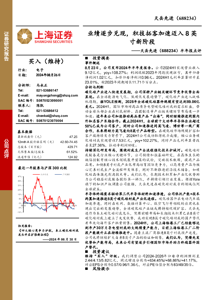 上海证券:天岳先进(688234)-半年报点评:业绩逐步兑现,积技拓客加速迈入8英寸新阶段.pdf