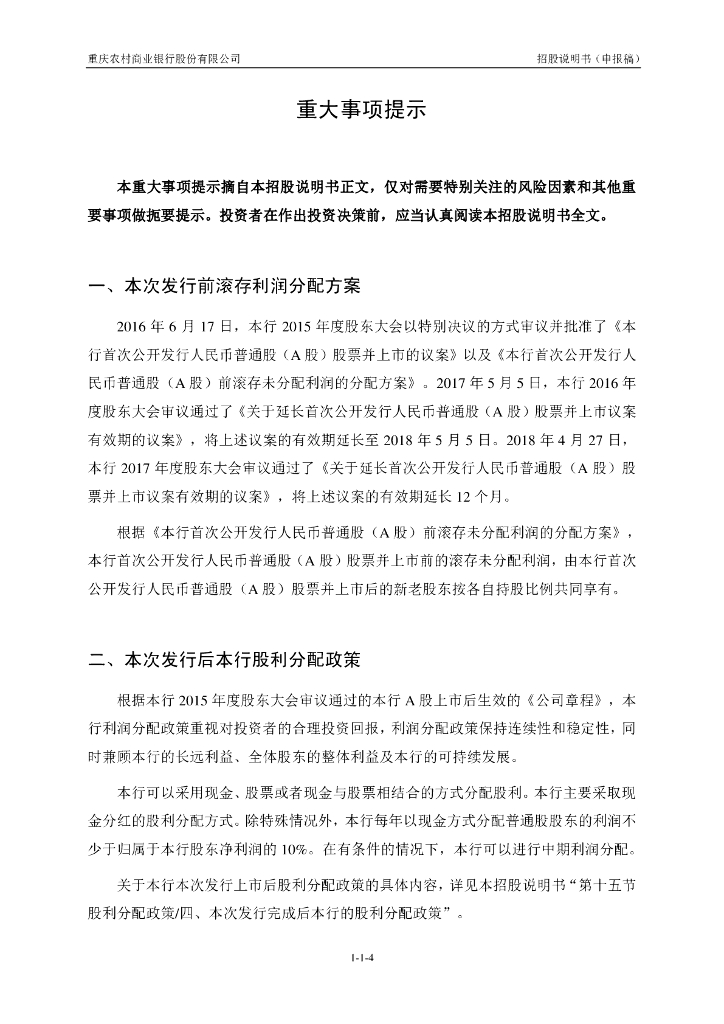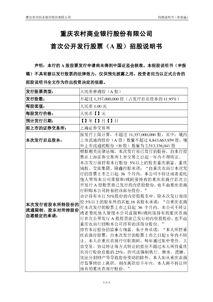 重庆农村商业银行股份有限公司上交所主板IPO上市招股说明书.pdf