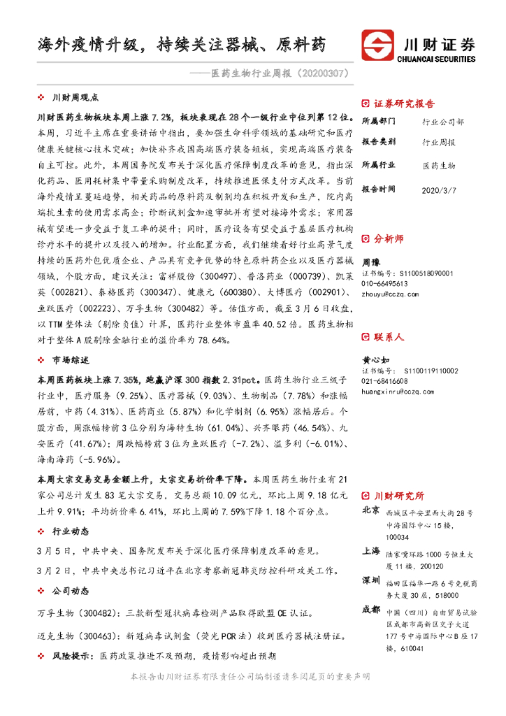 川财证券:医药生物行业周报:海外疫情升级,持续关注器械、原料药.pdf