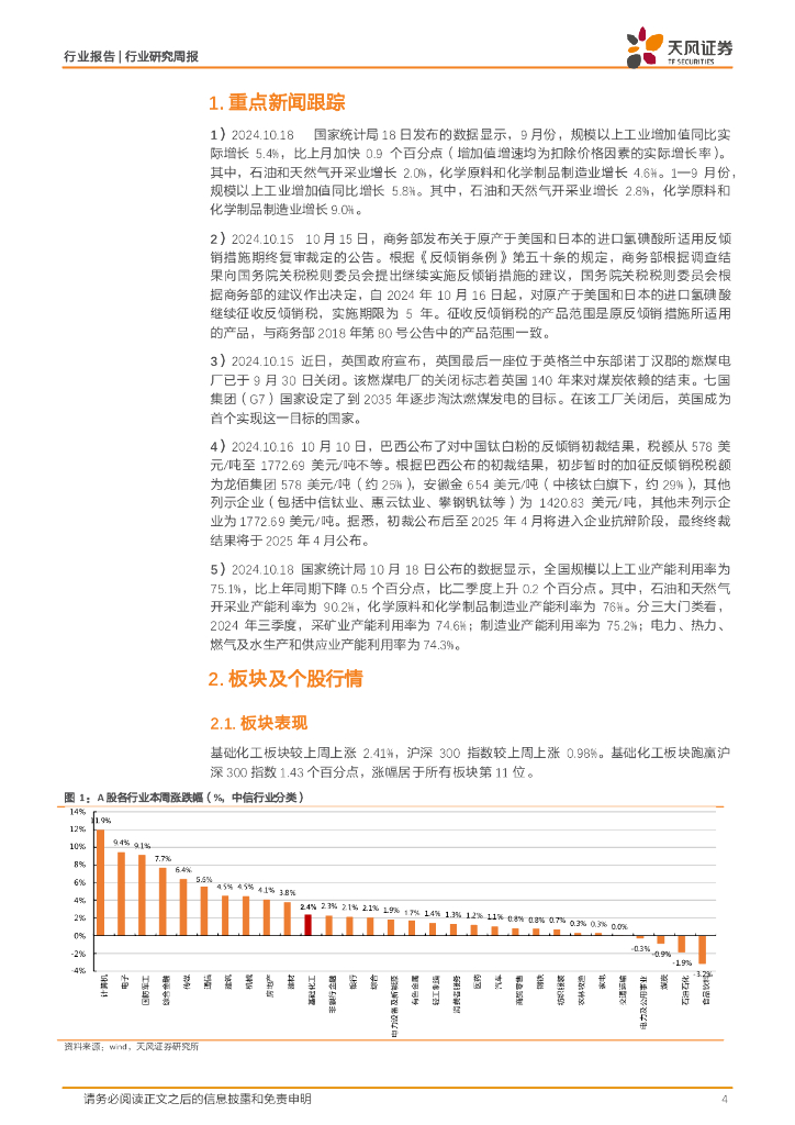 天风证券:基础化工行业研究周报:9月份化学原料和制品制造业增加值同比增长4.6%,BDO、纯MDI价格上涨.pdf