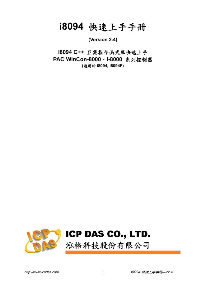 ICF DAS i8094 i8094 C++ 巨集指令函式庫快速上手 PAC WinCon-8000、I-8000 系列控制器 (適用於 i8094, i8094F) 快速上手手冊 (Version 2.4).pdf