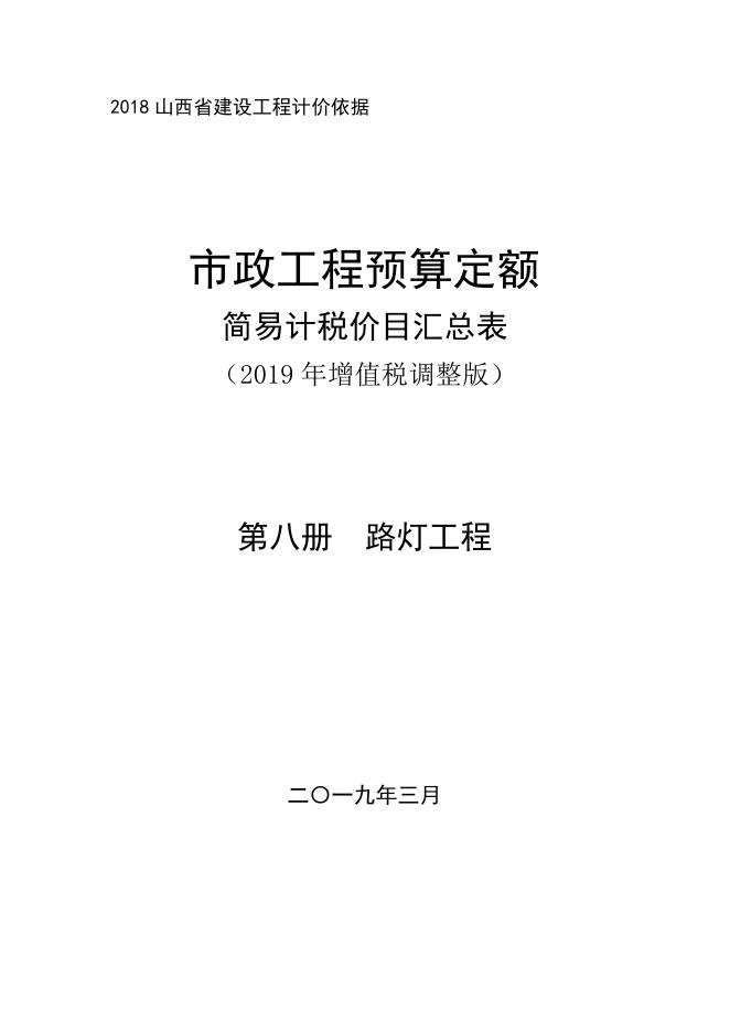 山西省市政工程预算定额 简易计税价目汇总表(2019年增值税调整版)第八册 路灯工程.pdf