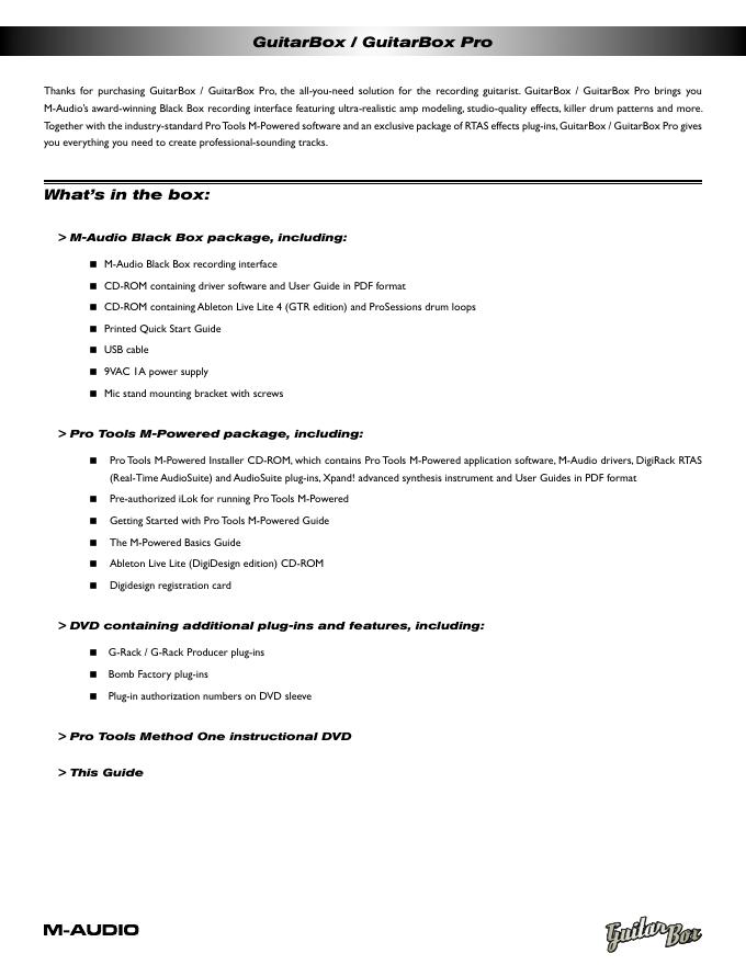 M-AUDIO Guitan Box PRO 快速入门指南.pdf