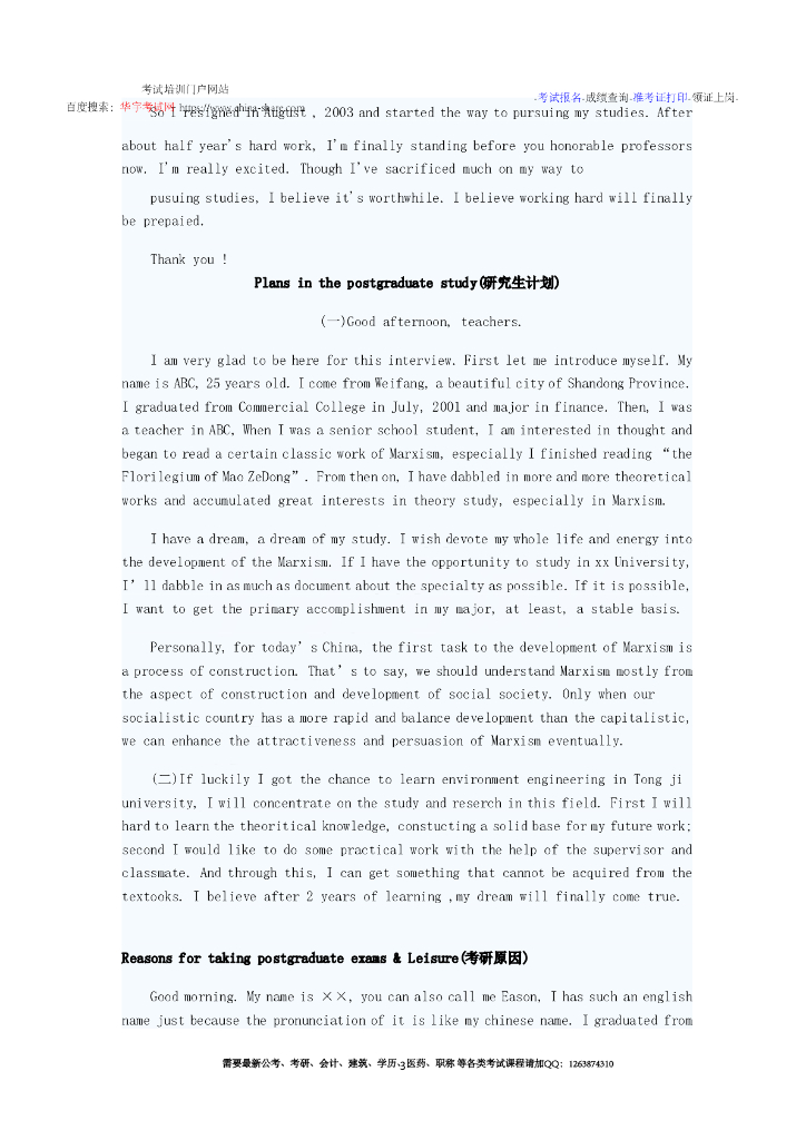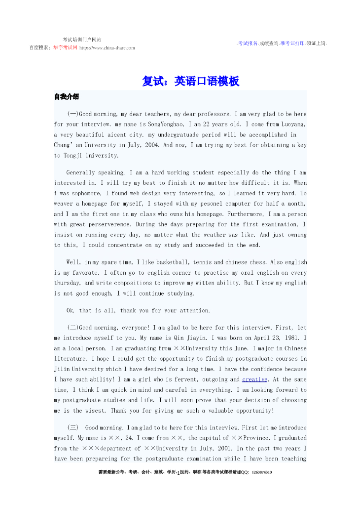 复试指导:英语口语模板.pdf