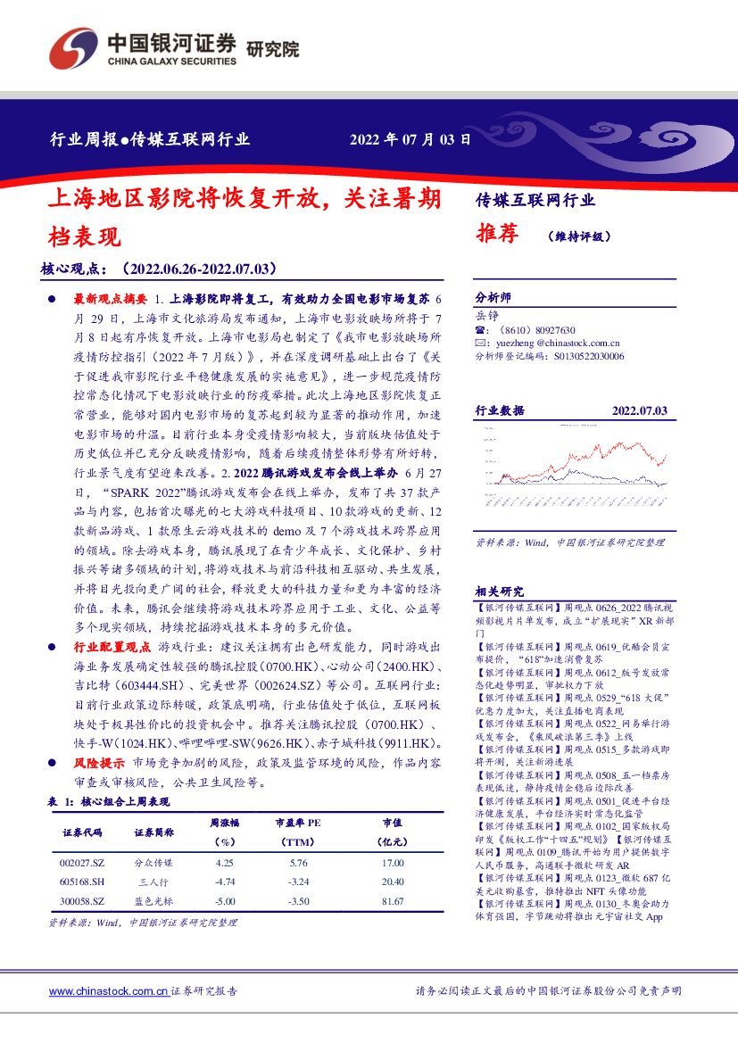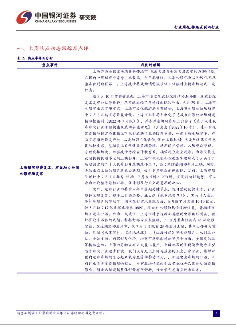 中国银河:传媒互联网行业周报:上海地区影院将恢复开放,关注暑期档表现.pdf