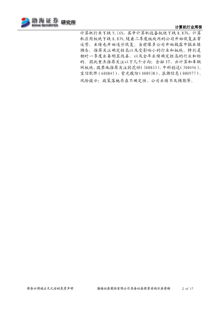 渤海证券:计算机行业周报:市场小幅调整,关注中报绩优标的.pdf