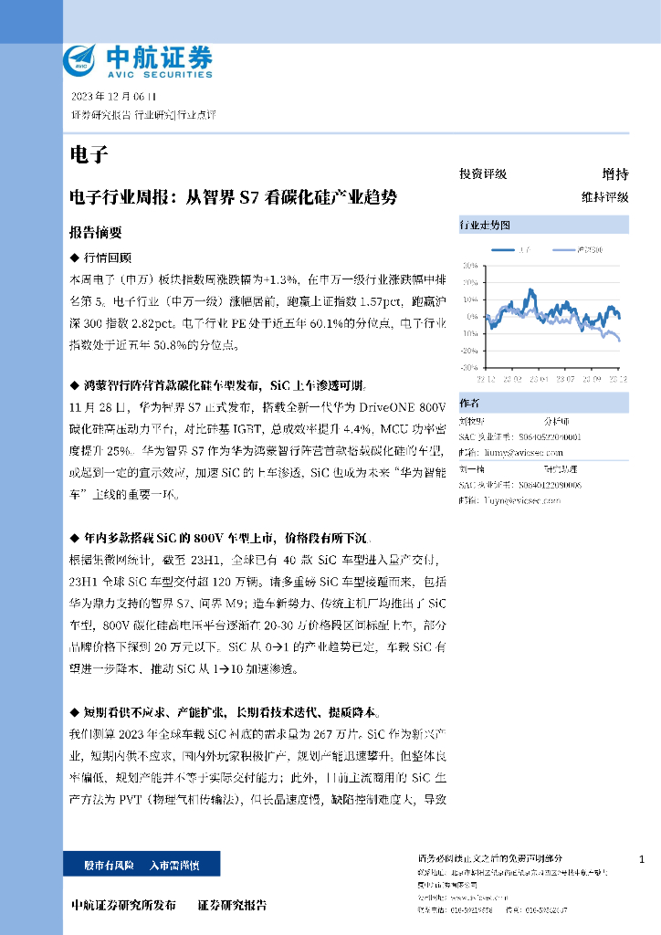 中航证券:电子行业周报:从智界S7看碳化硅产业趋势.pdf