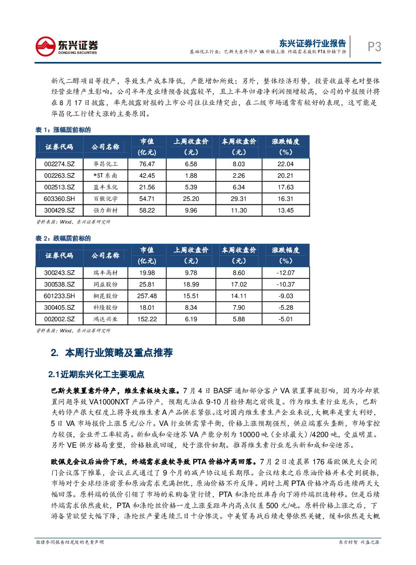 东兴证券:基础化工行业2019年7月份第1期周报:基础化工行业:巴斯夫意外停产VA价格上涨,终端需求疲软PTA价格下挫.pdf