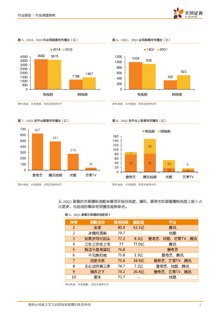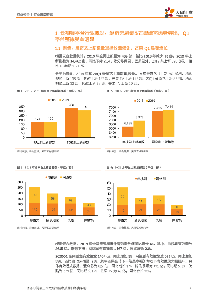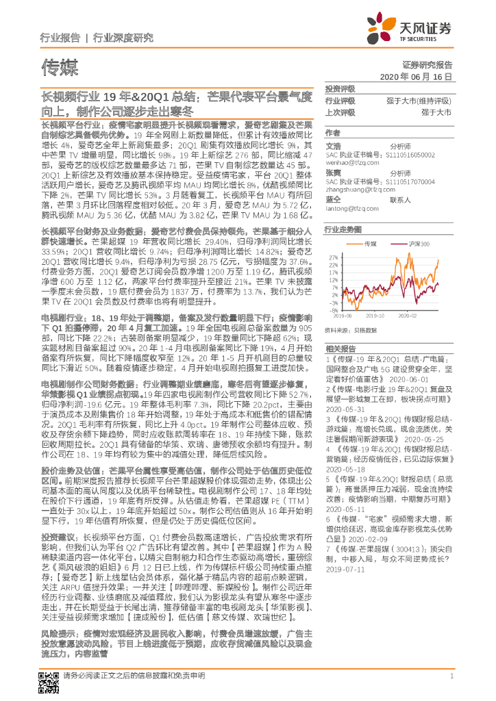 天风证券:传媒:长视频行业19年&20Q1总结:芒果代表平台景气度向上,制作公司逐步走出寒冬.pdf