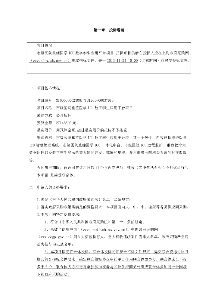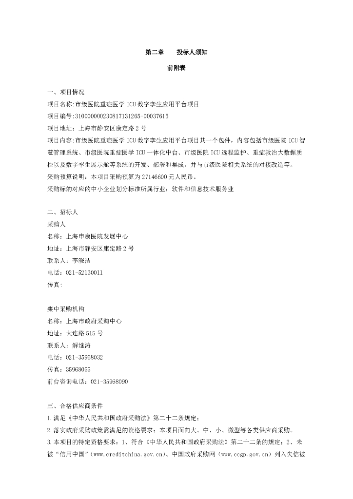 数字孪生ICU-上海市市级医院重症医学ICU数字孪生应用平台项目招标文件.pdf