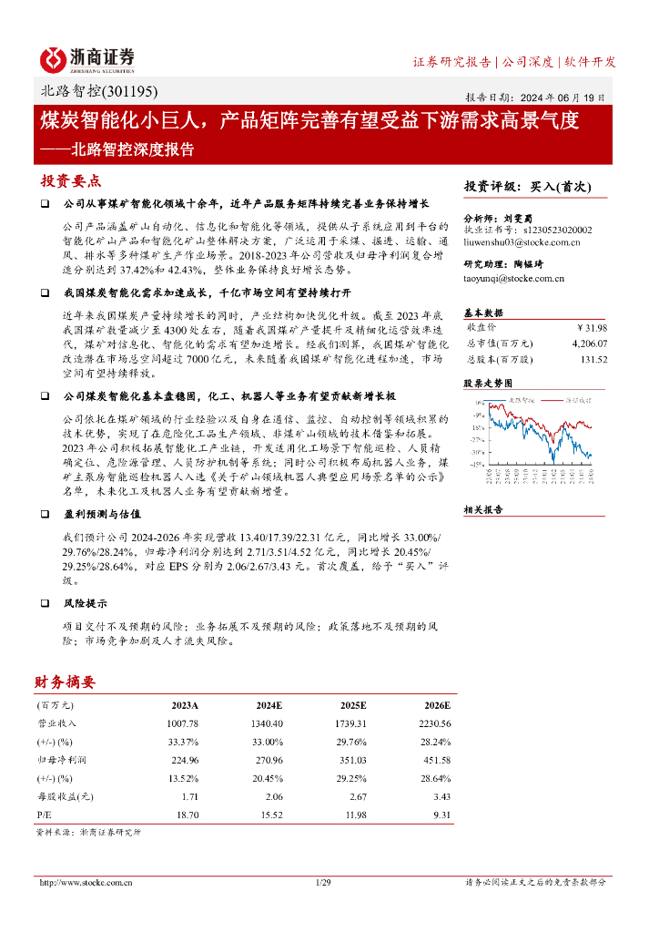 浙商证券:北路智控(301195)深度报告:煤炭智能化小巨人,产品矩阵完善有望受益下游需求高景气度.pdf