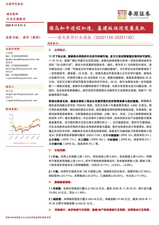 华源证券:建筑装饰行业周报:俄乌和平进程加速,基建板块迎发展良机.pdf