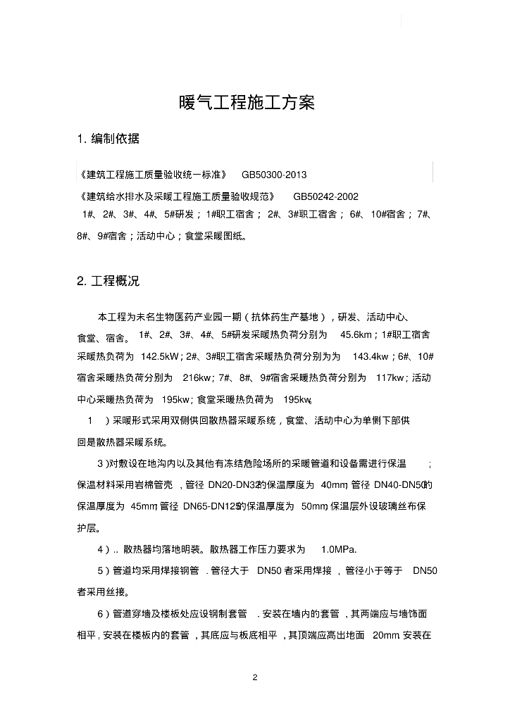 生物医药产业园一期食堂、工宿舍暖气安装施工方案.pdf