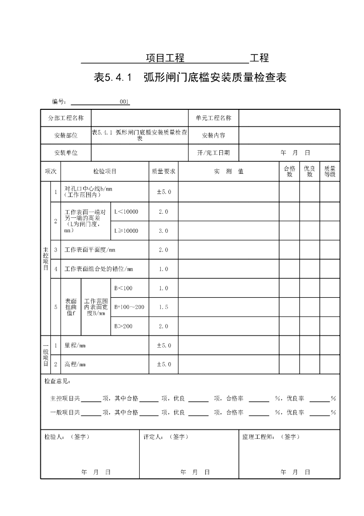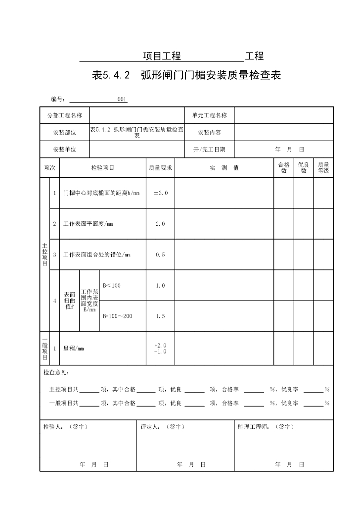 水利弧形闸门埋件安装质量验收评定表12P.pdf