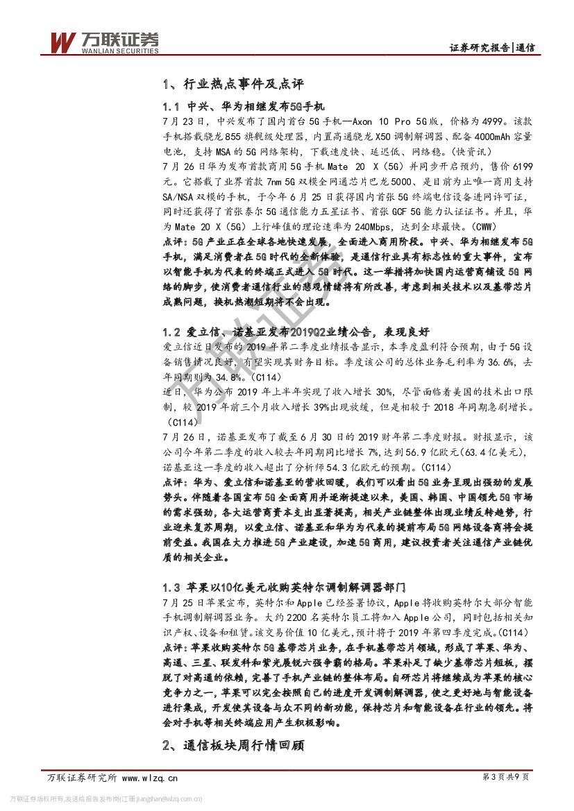 万联证券:通信行业周观点:5G建设与商用加快,提振通信产业链.pdf