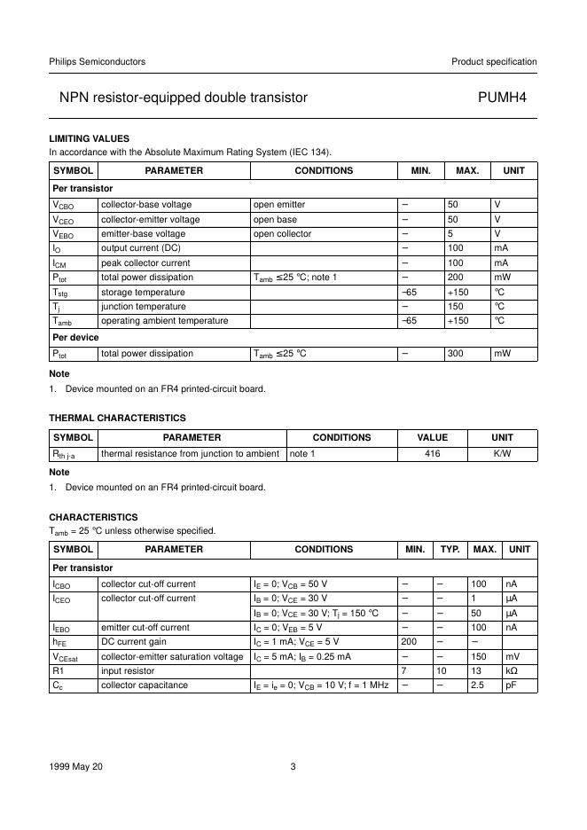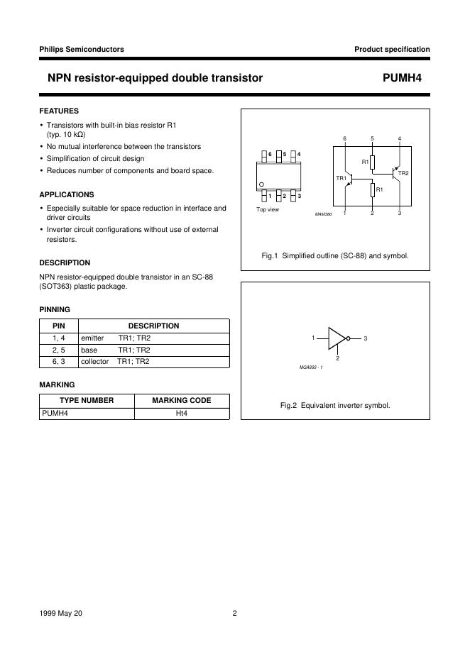 PHILIPS PUMH4 NPN resistor-equipped double transistor 数据手册.pdf