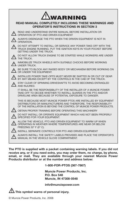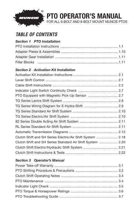 Muncie Power Products 6 螺栓和 8 螺栓安装系列 PTO 安装和操作手册.pdf