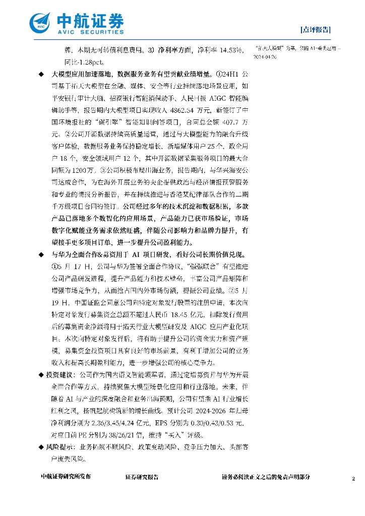 中航证券:拓尔思(300229)-业绩环季度改善,“AI大模型+数据业务”未来可期.pdf