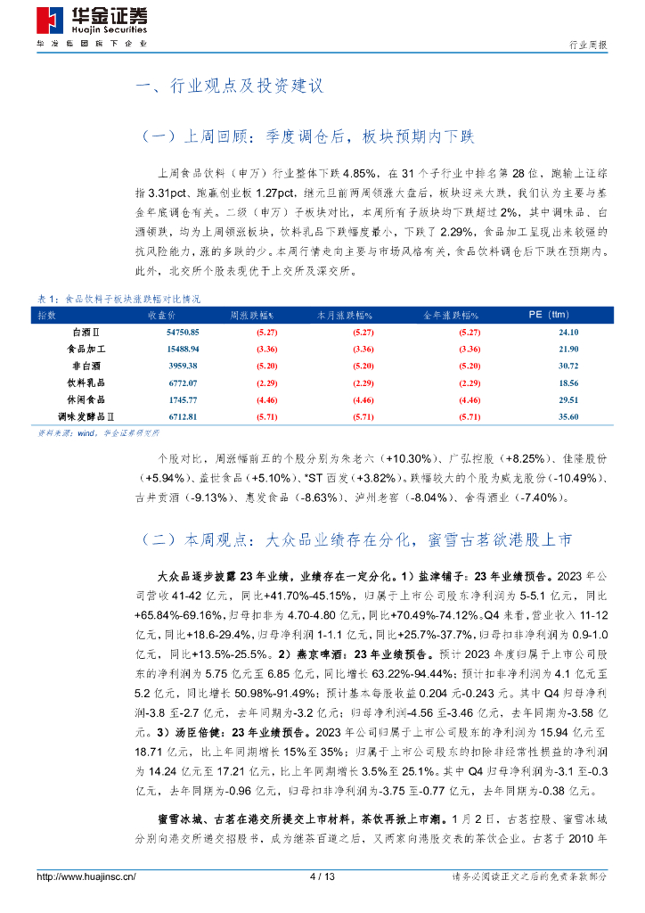 华金证券:食品饮料行业周报:大众品业绩存分化,蜜雪古茗欲港股上市.pdf