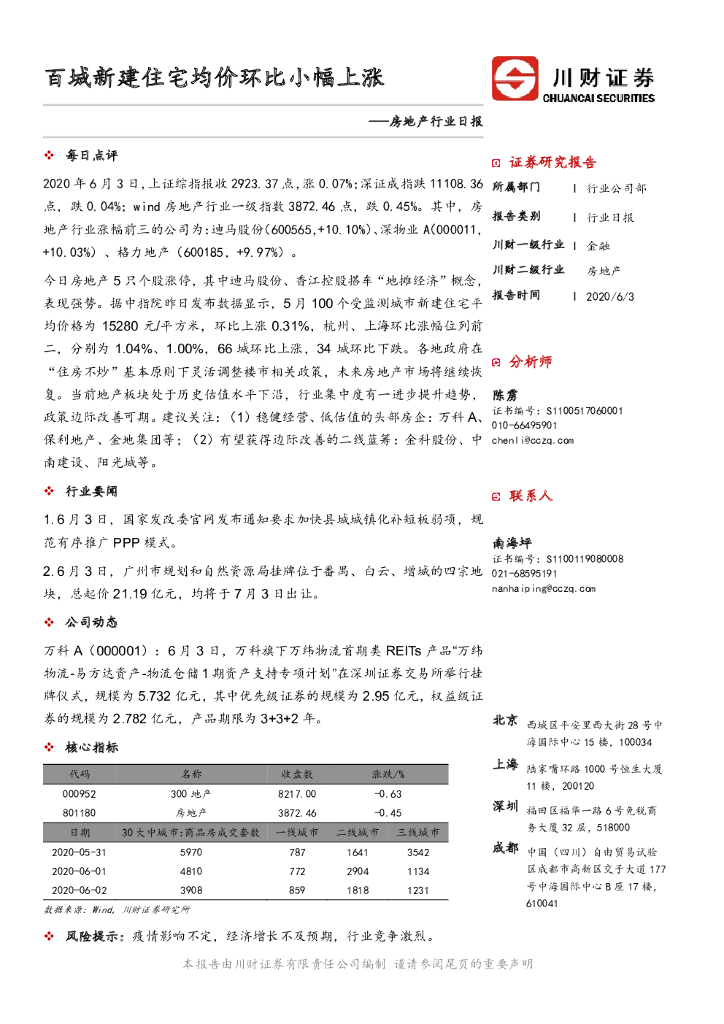 川财证券:房地产行业日报:百城新建住宅均价环比小幅上涨.pdf