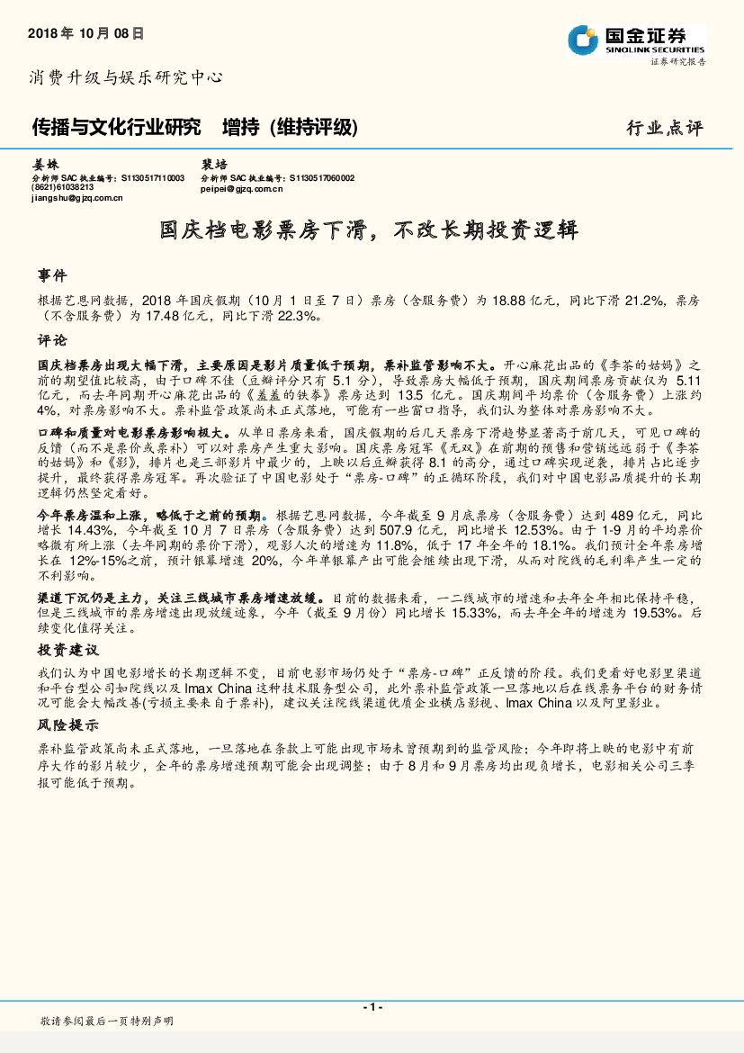 国金证券:传播与文化行业研究:国庆档电影票房下滑,不改长期投资逻辑.pdf