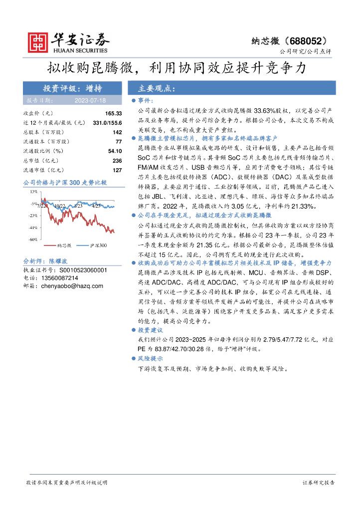 华安证券:纳芯微(688052)-拟收购昆腾微,利用协同效应提升竞争力.pdf